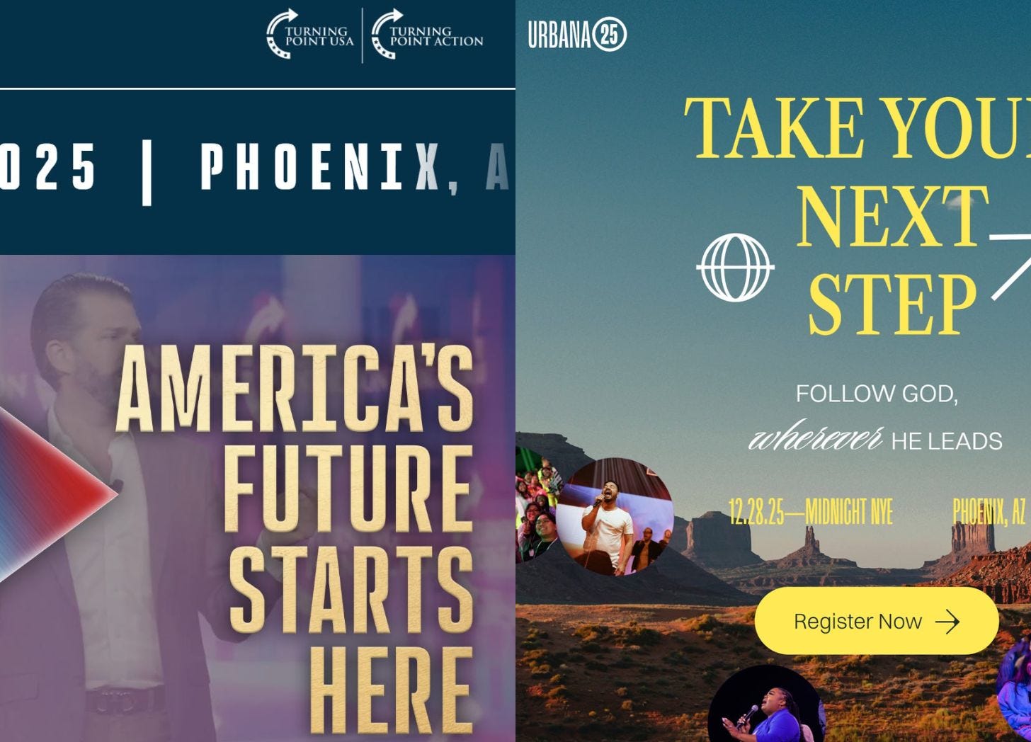 This month, the Phoenix Convention Center will host two large conferences organized by Christian groups. One describes its purpose as “bearing witness to the Kingdom.” The other calls Christians to “fight for the future of America.”